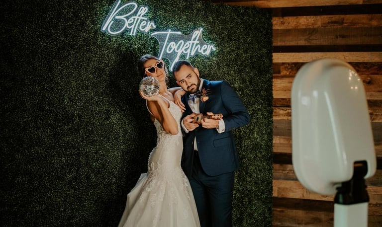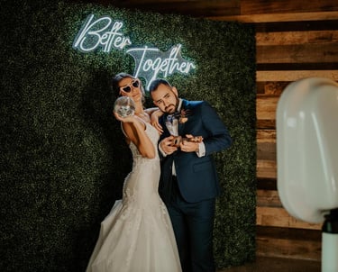 Make your big day even more unforgettable with a photo booth experience your guests will love. From elegant backdrops to custom overlays designed to match your wedding aesthetic, we help capture the fun, candid moments throughout your celebration. Our booth keeps guests entertained during cocktail hour, receptions, and everything in between - while providing instant digital or physical keepsakes they’ll actually save and share.